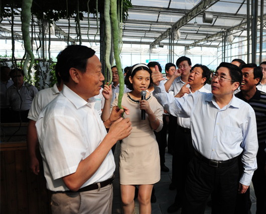 2012年11月22日,時(shí)任全國(guó)人大常委會(huì)委員長(zhǎng)吳邦國(guó)一行蒞臨昔陽(yáng)縣大寨華通現(xiàn)代科技農(nóng)業(yè)示范園項(xiàng)目調(diào)研。